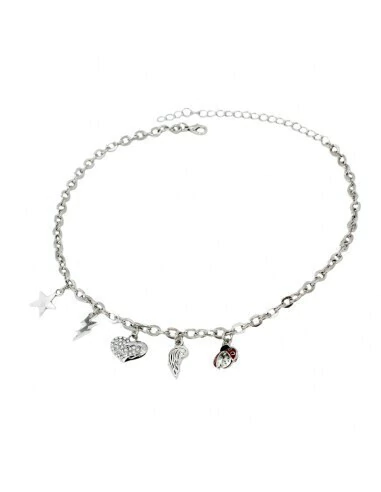 Collar de cadena difereniada con múltiples dijes exclusivos y de strass níquel.