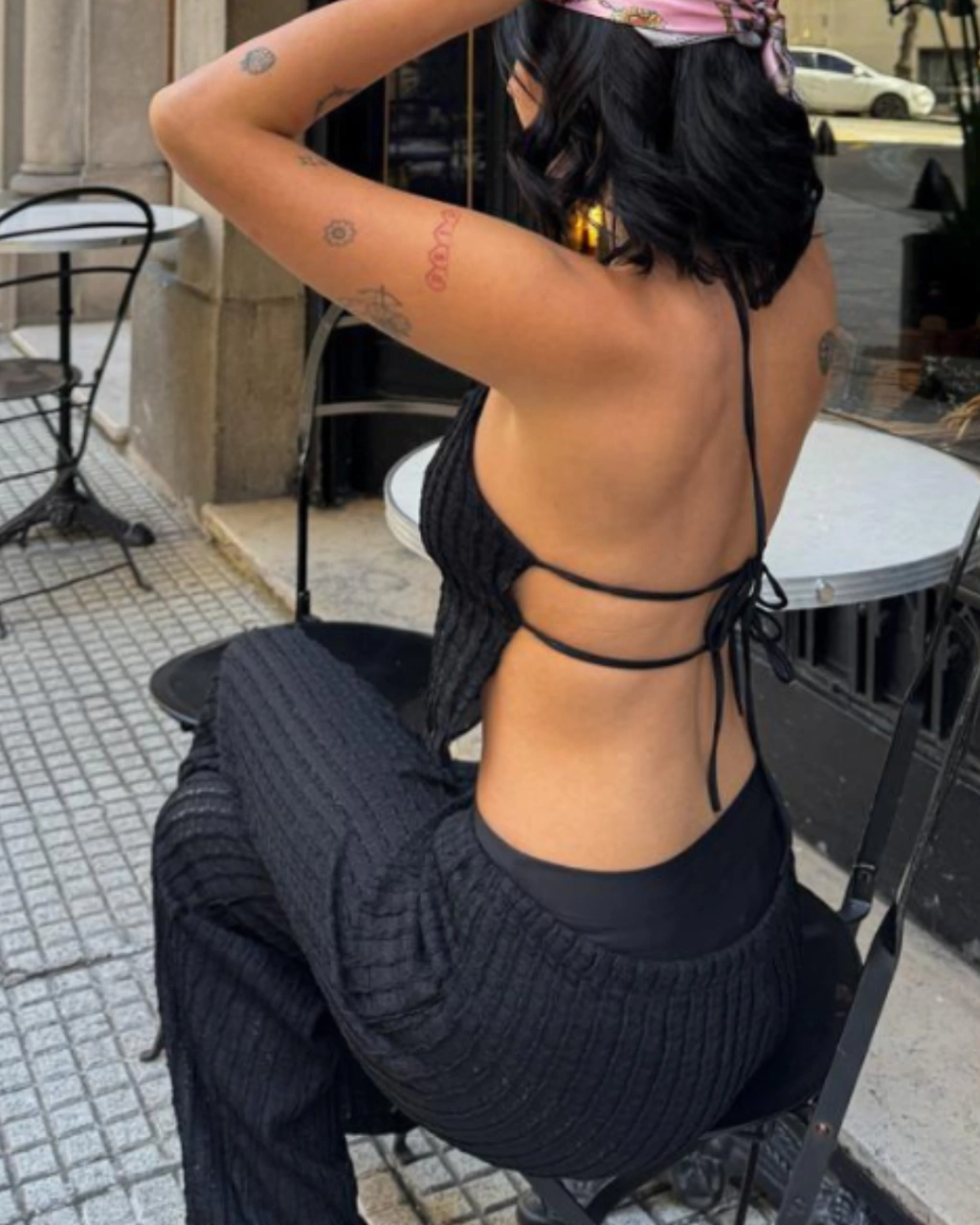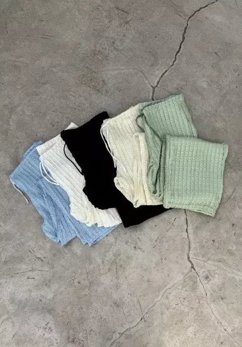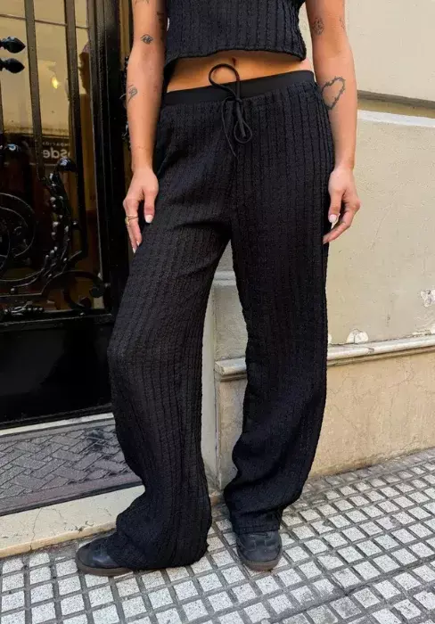 Conjunto tejido de top bretel fino con espada descubierta + palazo con cordon ajustable en cintura.