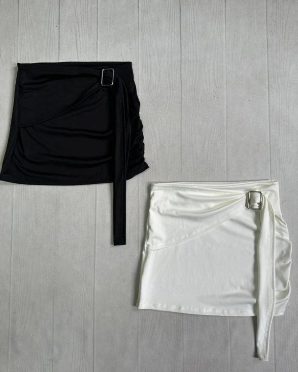 Pollera irregular hebilla cuadrada con lazo microfibra.
