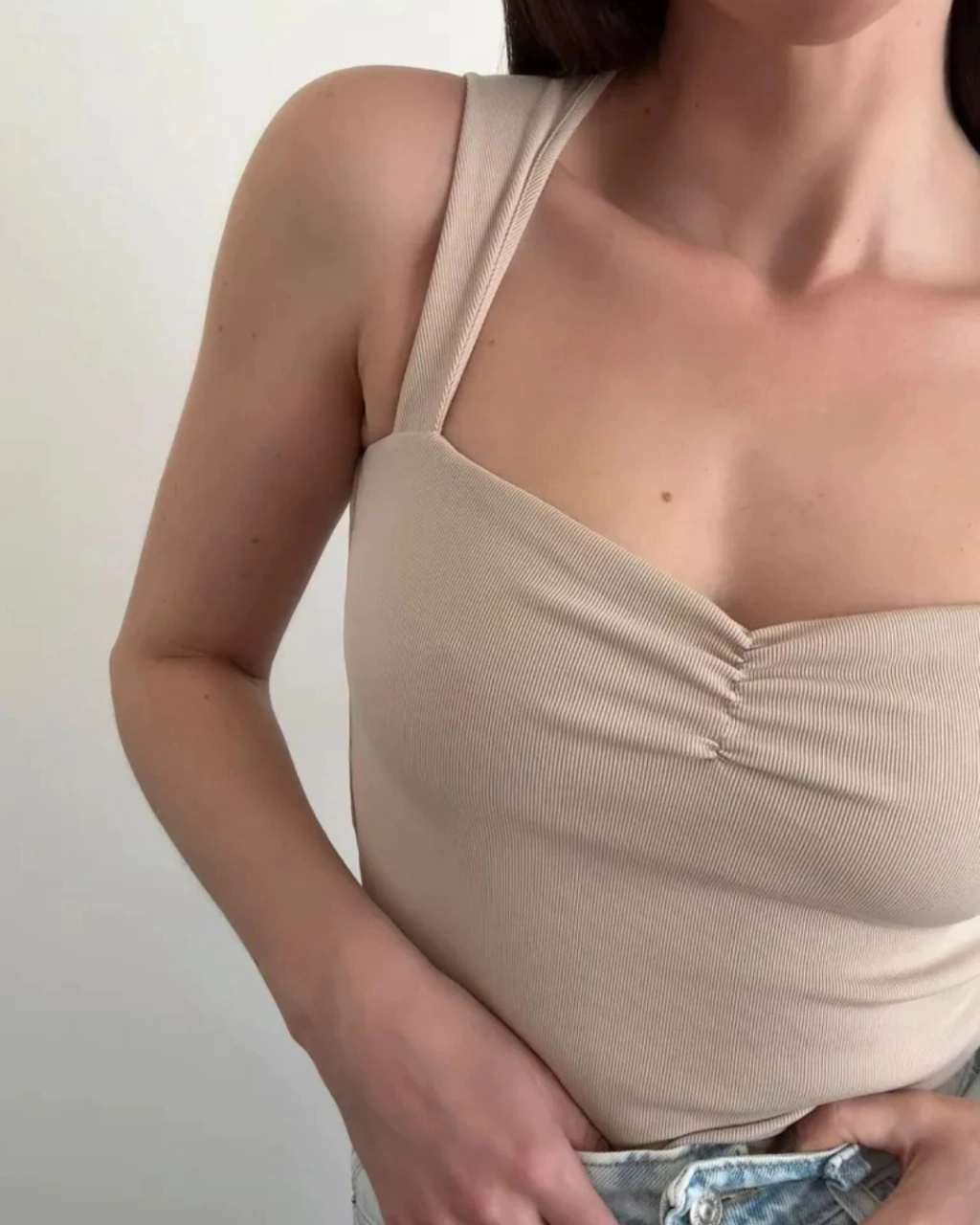 Musculosa escote corazón frunce ribb.