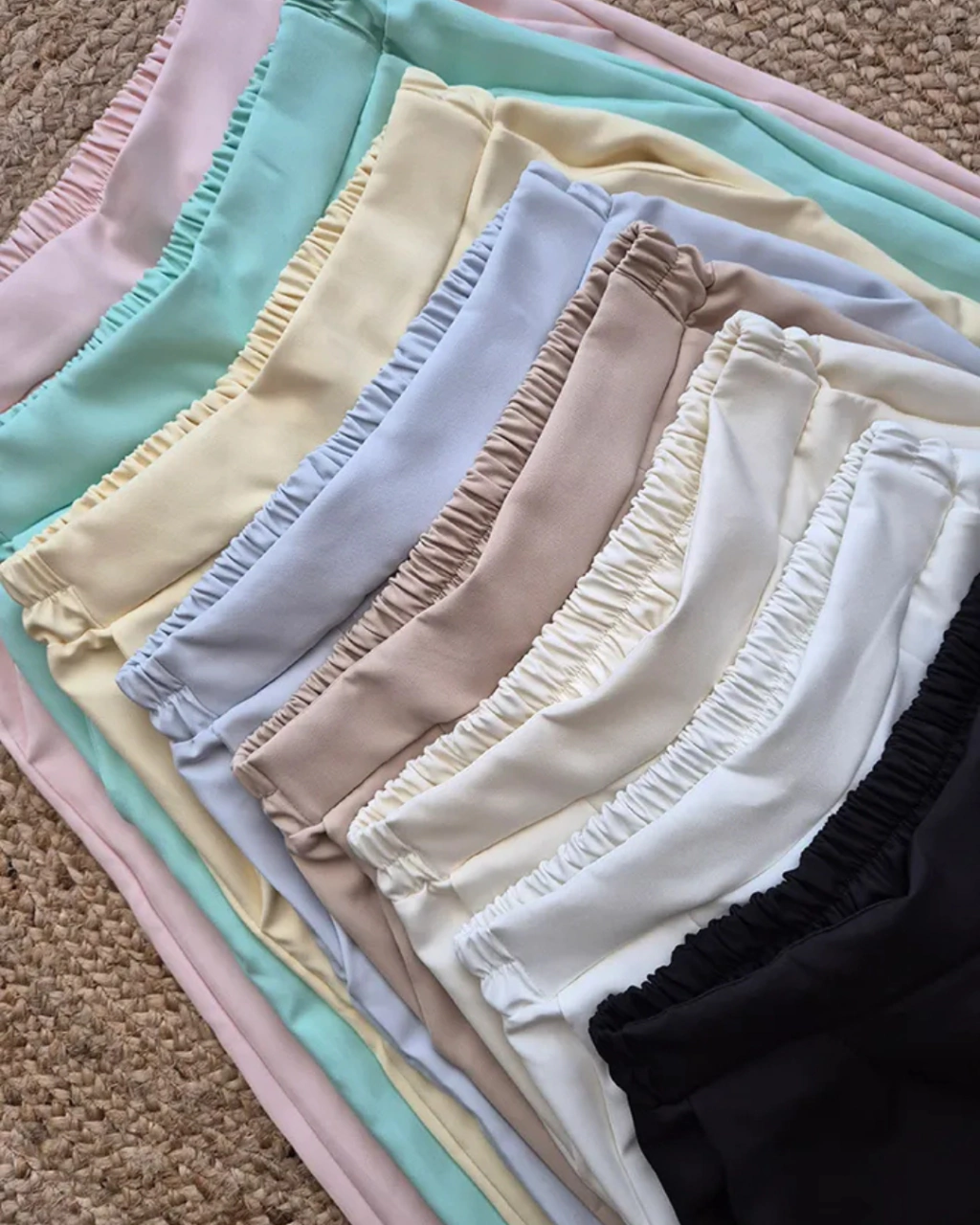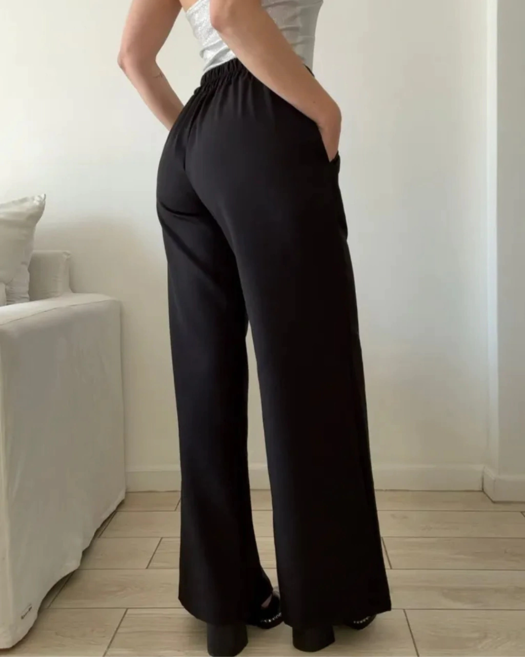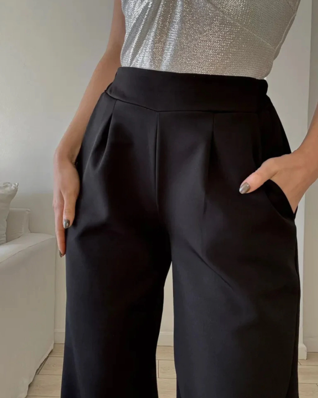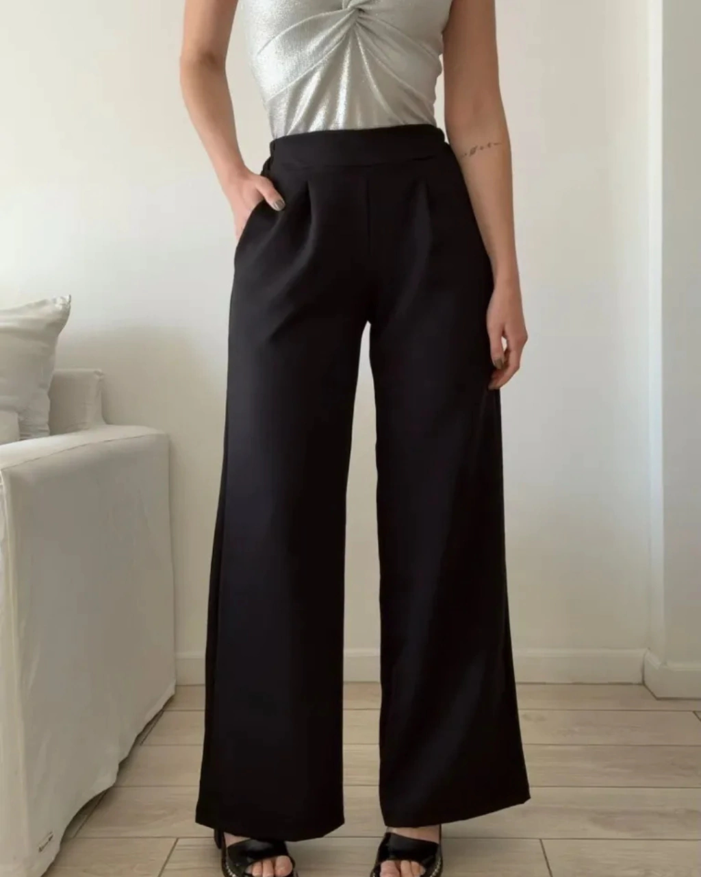 Pantalón pinza delantero elástico cintura con bolsillo sastrero.