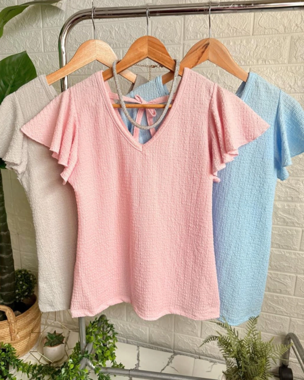 Remera Hawai con escote en V y tira en espalda.