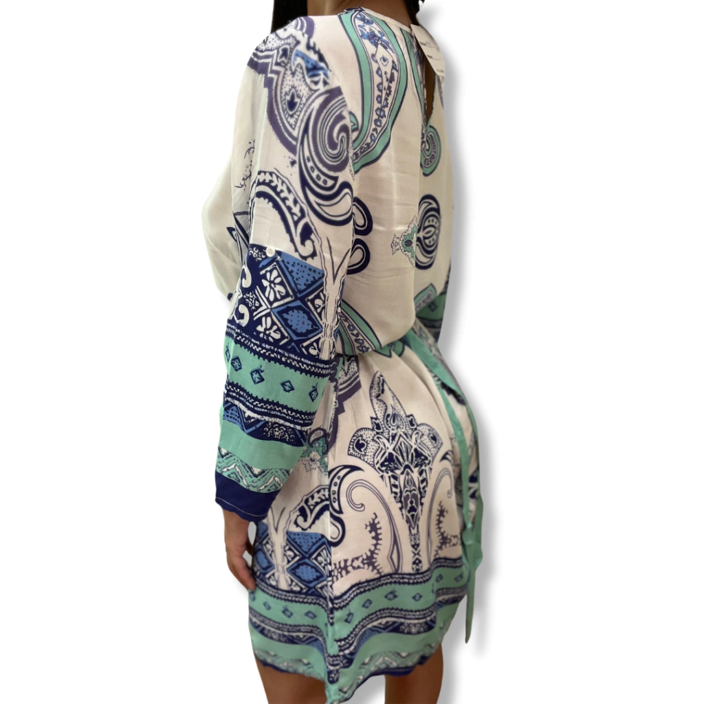 Modelo suelto con tira para ajustar en cintura.